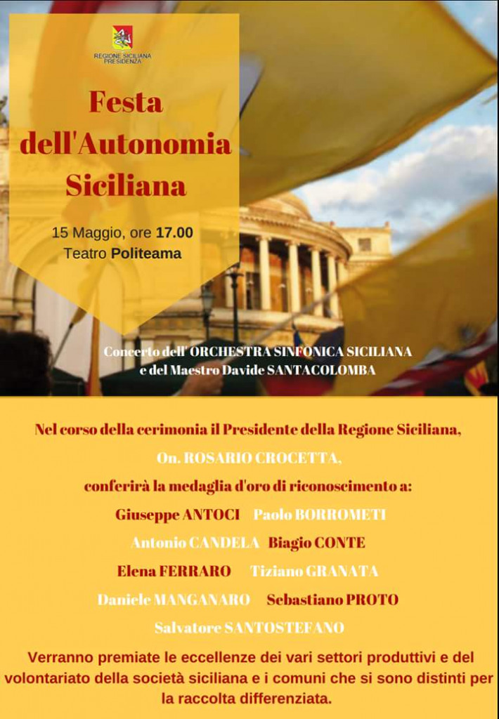 Nel corso della cerimonia, aperta ai cittadini, saranno premiati – tra gli altri – con la medaglia d’oro di riconoscimento conferita dal presidente della Regione siciliana Rosario Crocetta: