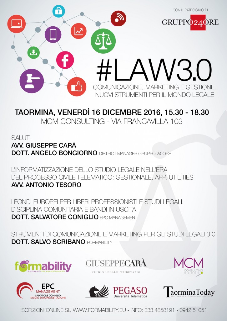 • #LAW3.0 comunicazione marketing e gestione nuovi strumenti per il mondo legale – Taormina 16 dicembre 2016